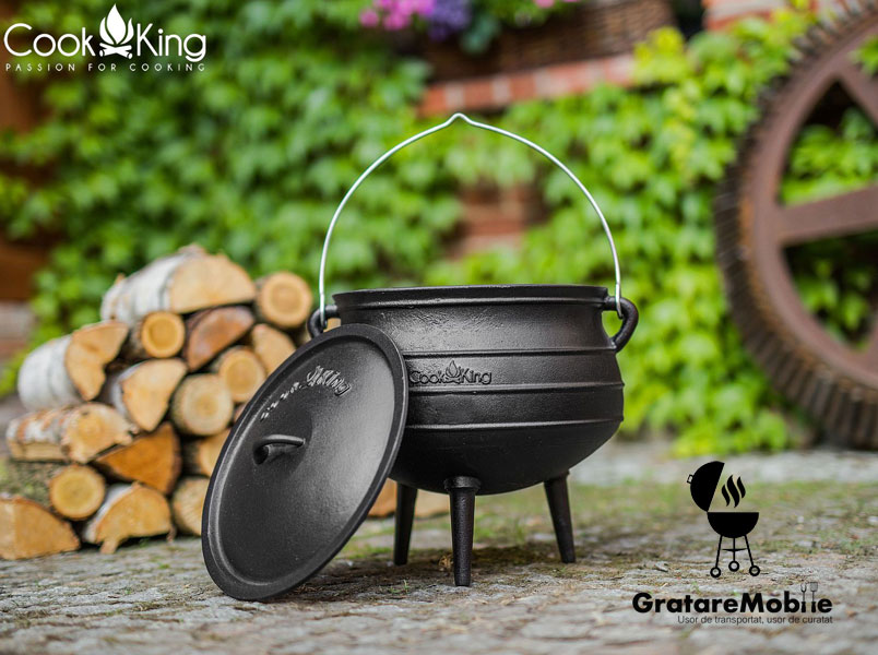 Ceaun din fonta de cea mai buna calitate, capacitate 6l. Ceaun din fonta de cea mai buna calitate, capacitate 6l. Peretii grosi si partea inferioara a ceaunului asigura o incalzire chiar si o conservare exceptionala a caldurii. Fonta este este cunoscuta pentru proprietatea sa distinctiva de a transmite gust si miros bucatelor dvs.. Intretinerea ceaunului din fonta este foarte simpla si durata de viata este mare.Gatitul la ceaun va crea o atmosfera placuta in gradina pentru întalniri, petreceri si sarbatori, care vor fi îmbunatatite suplimentar de mese aromate si delicioase.