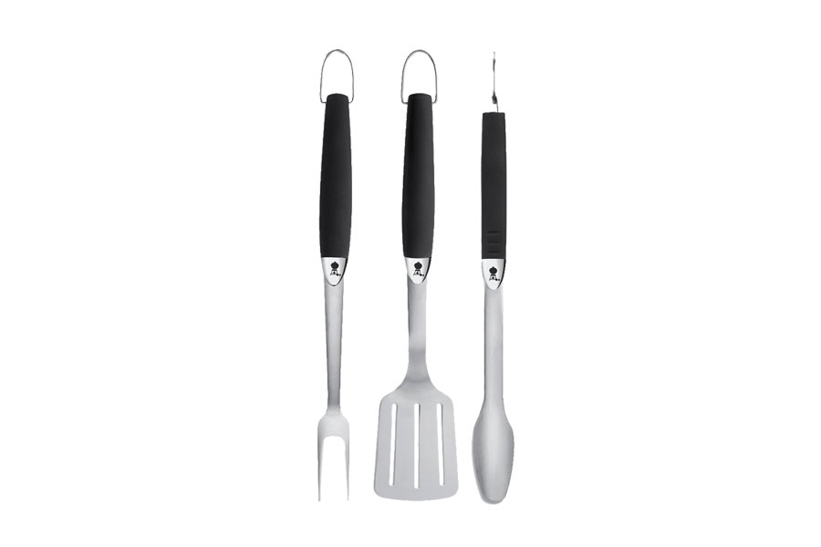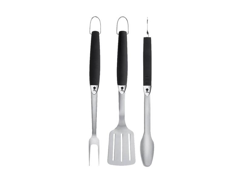 Set trei accesorii premium pentru cuptor si gratar. Set format din furculita, spatula si cleste din otel inoxidabil cu maner din plastic.