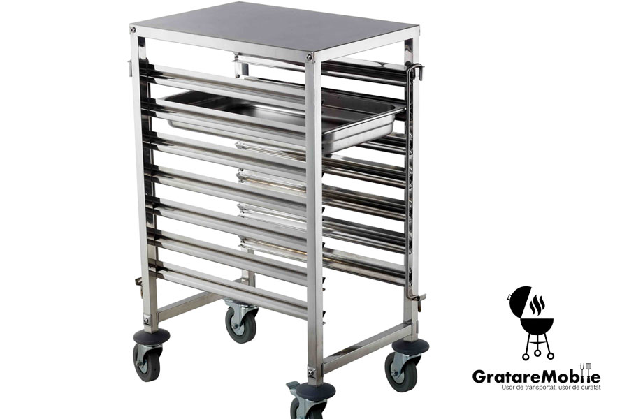 Carucior debarasare tavi inox, produs profesional horeca, marca Hendi import Olanda.