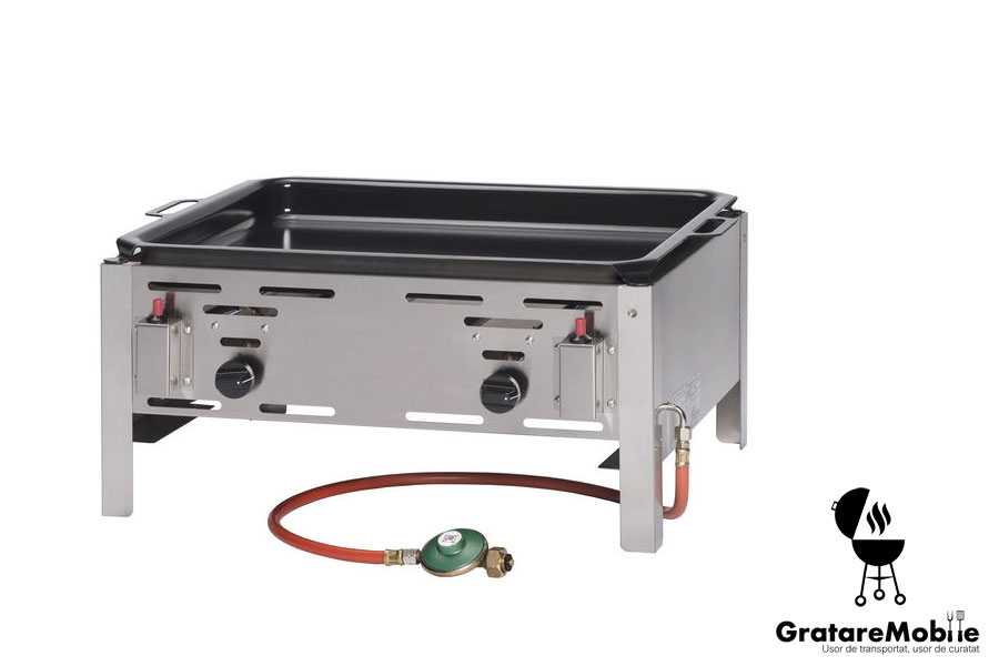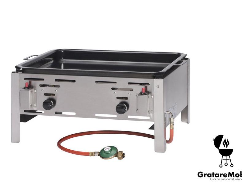 Gratar pe gaz, produs profesional horeca, import Olanda. Gratar pe gaz marca Hendi, are cadru din otel inoxidabil si tava de coacere emailta.Potrivit pentru gaz propan, gratarul are aprindere electronica si termocuplu.