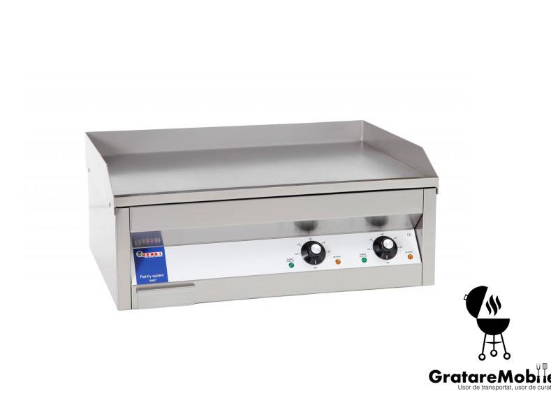 Grill electric M65, produs profesional horeca marca Hendi, import Olanda. Perfect pentru preparare hrana sanatoasa la gratar cum ar fi: carne, peste, legume, omlete etc. Aceste gratare sunt mai bune decat gratarele pe carbuni pentru ca nu emit gaze toxice. Gratarul este construit dintr-un fier calit special si are proprietati mari de incalzire. Este rezistent la lovituri si foarte durabil astfel este mai bun decat gratarele din fonta sau din otel carbon.