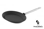 Tigaie ovala prajit, profesionala din aluminiu dur, cu strat anti-lipire din titan. Se incalzeste foarte repede datorita constructiei din aluminiu dur, adecvata pentru toate sursele de incalzire cu exceptia inductiei.