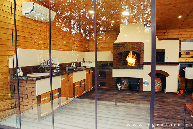 Gratar classic DTO-Stilul clasic si simplificat al unei bucatarii de vara este ideal pentru persoane creative, deoarece iti da libertatea de a o personaliza. Culorile disponibile iti permit sa scoti in evidenta liniile constructive clasice, sa creezi contraste care subliniaza arhitectura casei tale.O bucatarie complete, generoasa care te imbie la gatit in toate anotimpurile anului. Compus din: cuptor pe lemne (dimensiuni vatra diametru 72 cm), gratar/rotisor actionat electric cu sarcina de 40 kg, grill inox reglabil (dimensiuni 85x50cm) iluminat gratar, soba pe lemne cu plita fonta standard trei ochiuri,masa mare de lucru mare gratar, corp frigider,plita electrica,corp masina spalat vase, corp chiuveta , usi standard, accesorii decor.