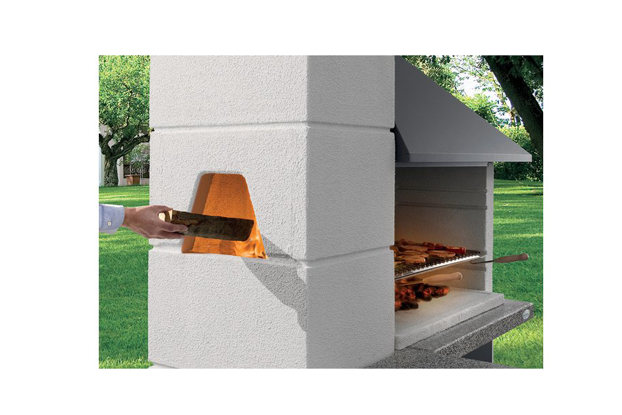 * camin de foc cu brat lateral si sarcina externa a lemnului;
