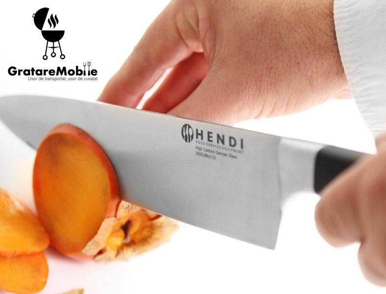 * aliajul de otel X50CrMoV15 garanteaza urmatoarele caracteristici: - Tais ascutit - Tais de lunga durata - Usor de ascutit - Rezistenta ridicata la pete