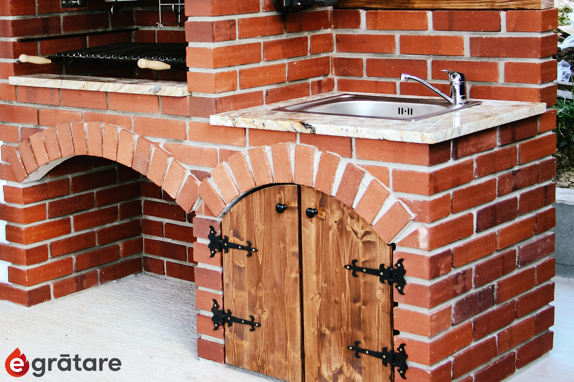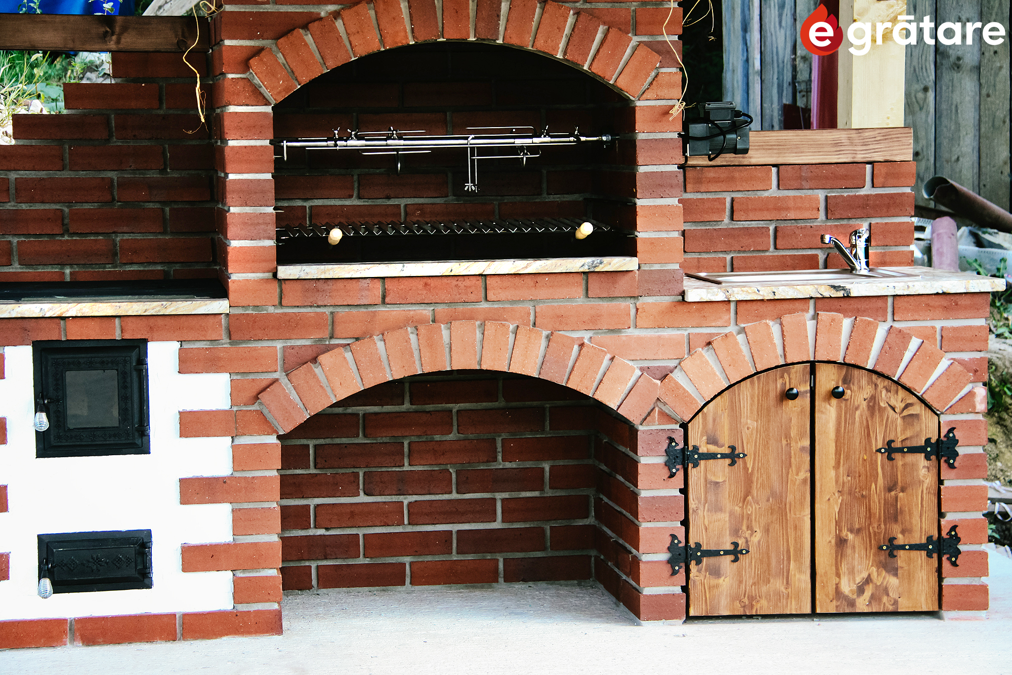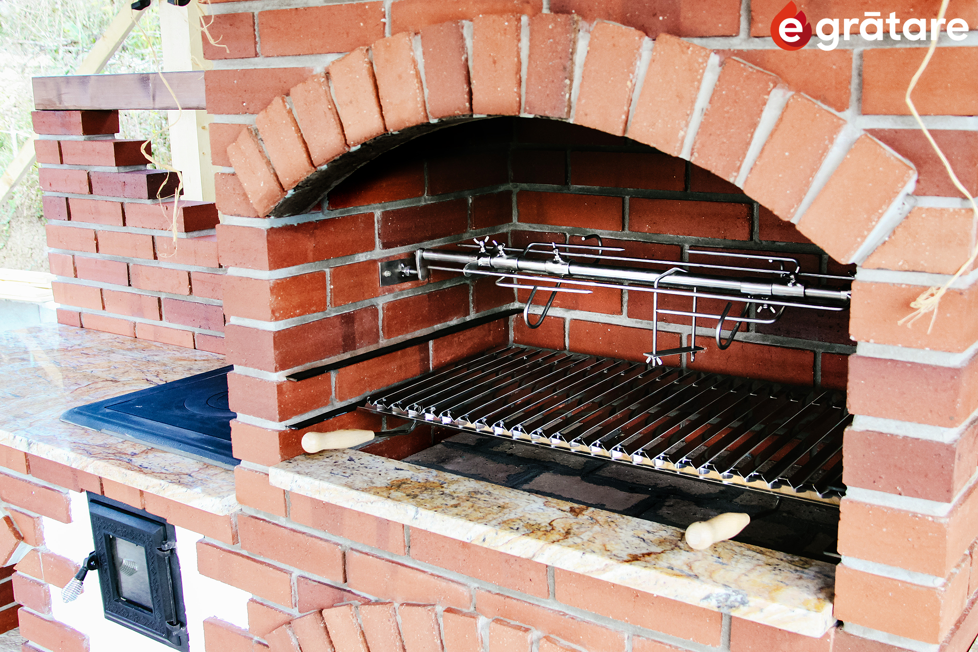 in jurul focului, la povesti, la un pahar de vin sau de palinca, asa cum se face in Ardeal.Va invitam sa descoperiti gustul mancarii facute pe jar adevarat,intr-o bucatarie de vara inspirata din rusticul romanesc,unde focul arde incet, iar bucatele ies cu suflet. Bucate simple. Foc adevarat. Gust de neuitat. Compusa din: gratar/rotisor (dimensiuni 85x50cm), spatiu chiuveta cu usi lemn standard, soba pe lemne cu plita fonta standard trei ochiuri, masa de lucru, accesorii decor.